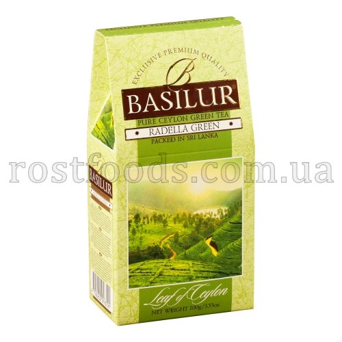 Чай Базилур "Раделла"" зелений цейлонський байховий листовий. Вага: 100г"