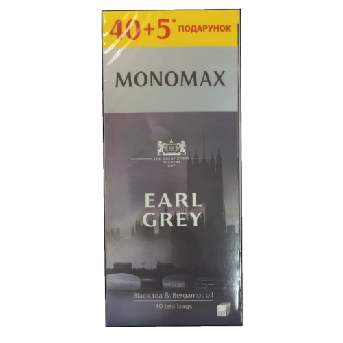 Чай Monomax Earl Grey Мономах Ерл грей чорний чай 40+5 пакетів