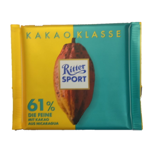 Шоколад Ріттер спорт Какао класу 61% м'яке з Нікарагуа Ritter sport Kakao klasse 61% 100г