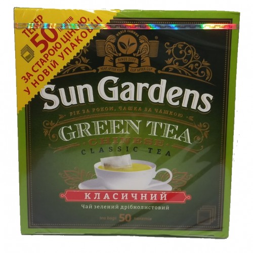 Чай Sun Gardens Classic Tea Сан Гарденс Класичний Чай Зелений 50 пакетів